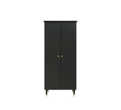 Deze mooie 2-deurskast Cloë van Bopita is een echte eyecatcher in de babykamer. De kast is uitgevoerd in een combinatie van mat zwart met gouden accenten. Hierdoor krijgt de kast een warme luxe uitstraling. Het interieur bestaat uit een hangroede en verschillende legplanken, waarvan de meeste in hoogte verstelbaar zijn. Zo kun je de kast dus helemaal naar je eigen wens en smaak inrichten. Combineer de 2-deurskast met de andere meubelen uit de serie Cloë.