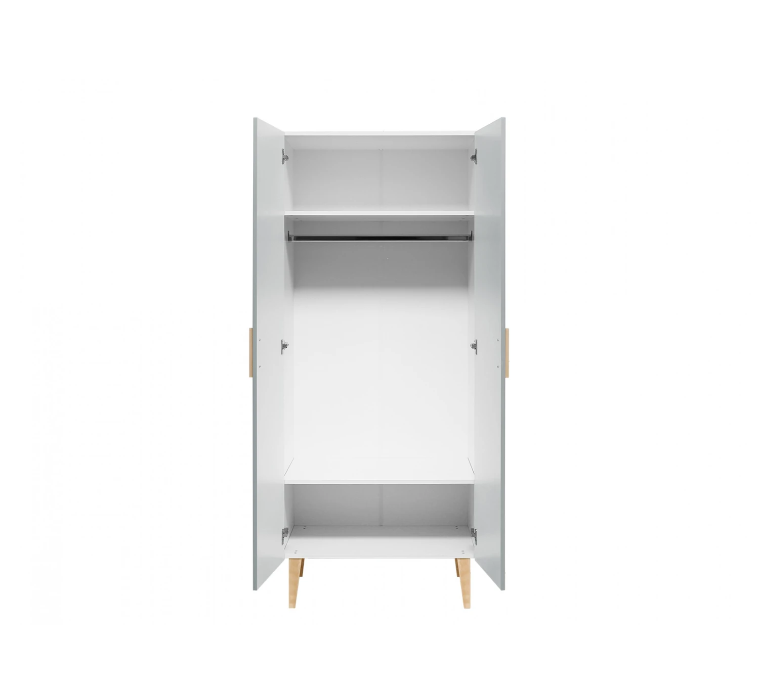 Creëer een zee aan opbergruimte met deze mooie 2-deurskast Emma van Bopita. De kast is voorzien van ranke beukenhouten pootjes en subtiele grepen. De deuren zijn grijs geschilderd voor een speels effect. De gebruikte lak is op waterbasis en is milieu- en kindvriendelijk. Het interieur van de kast bestaat uit twee legplanken en een hangroede.