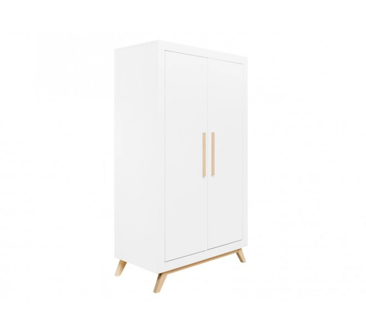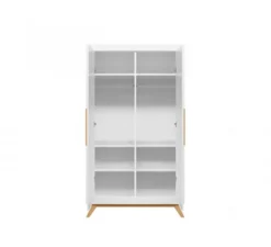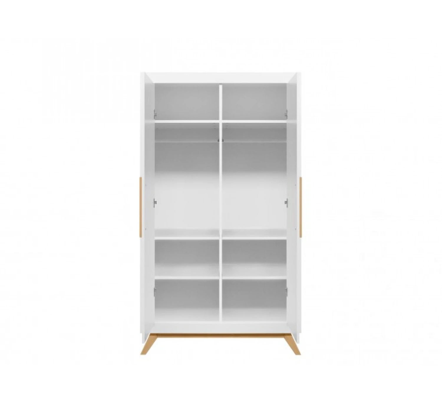 Deze Bopita 2-deurskast uit de serie Fenna heeft een moderne en eigentijdse uitstraling dankzij het wit in combinatie met de blank gelakte houten accenten. De binnenkant van de kast bestaat uit twee vaste schappen, twee hangroedes en vier in hoogte verstelbare legplanken. Deze kast biedt dus meer dan voldoende opbergruimte voor veel spullen of kleding.