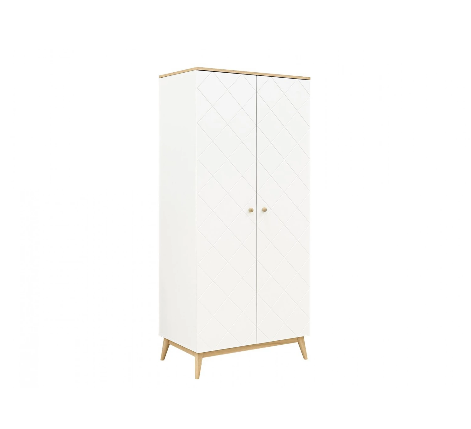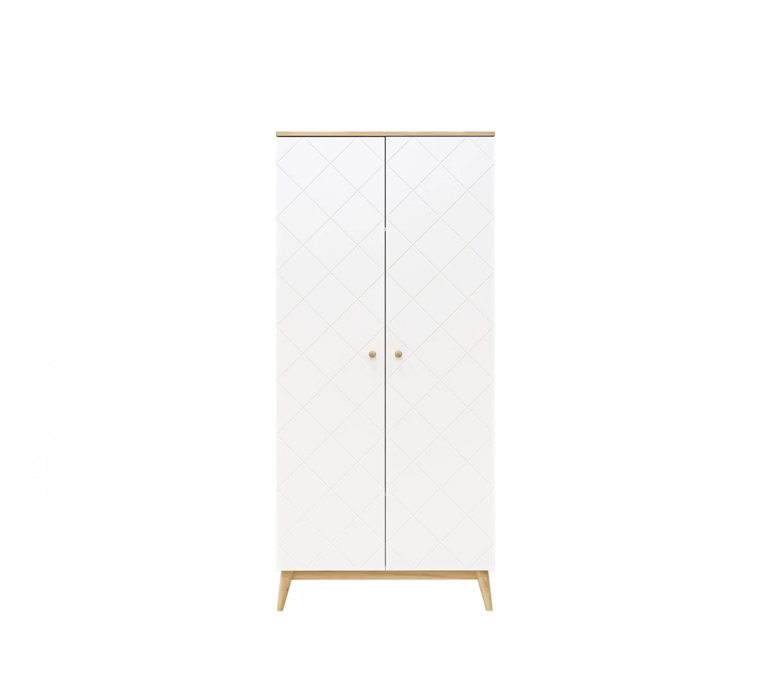 De 2-deurskast Paris van Bopita is voorzien van karakteristieke diagonale groeven en een eikenhouten afwerking, waardoor de kast een luxe uitstraling heeft. Het interieur bestaat uit ƩƩn brede hangroede en twee legplanken. Hierdoor heb je dus voldoende ruimte om al je spulletjes en kleding te kunnen opbergen.