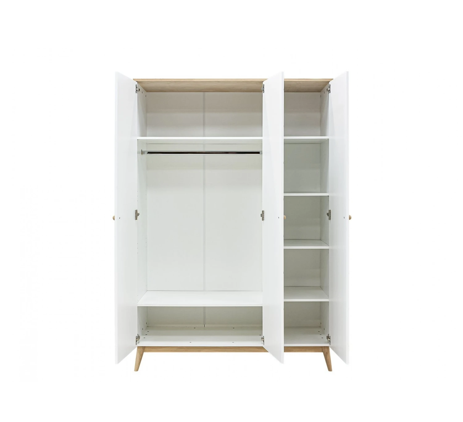 De 3-deurskast Paris van Bopita is voorzien van karakteristieke diagonale groeven en een eikenhouten afwerking, waardoor de kast een luxe uitstraling heeft. Het interieur bestaat uit ƩƩn brede hangroede en zes legplanken. Hierdoor heb je dus voldoende ruimte om al je spulletjes en kleding te kunnen opbergen.