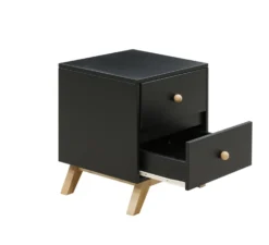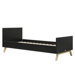 Modern tienerbed van de serie Nora, inclusief houten lattenbodem. Eigentijdse uitstraling door de combinatie van mat zwart en naturel beukenhouten onderstel. Uitvalbeschermer Bo past op dit bed, apart verkrijgbaar.