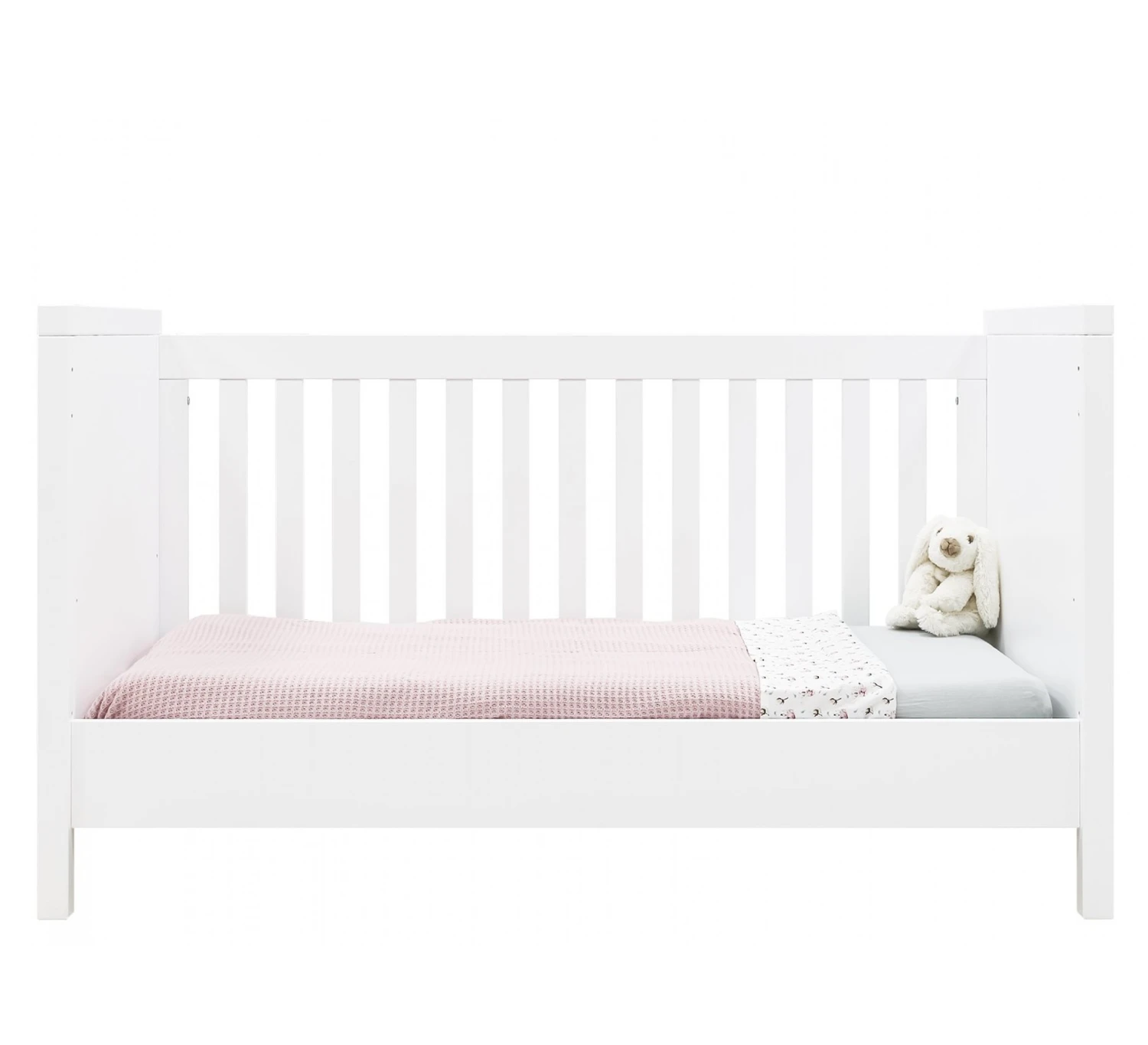 Dit babybed met spijlen van de serie Corsica kan omgebouwd worden naar een bedbank voor peuters. Zo kan de kleine zelf in- en uitstappen en hieraan wennen. Inclusief bedbodem, spijlenrek en lage zijde voor de bedbank. De bedbodem van het spijlenbed is in hoogte te verstellen. Beide bedden hebben dezelfde maat (70 x 140 cm), waardoor 1 matras voldoende is. Omdat dit bed omgebouwd kan worden zult u er lang plezier van hebben! Let op: dit bed is niet om te bouwen naar een cotbed variant, er is altijd 1 spijlenzijde aanwezig.