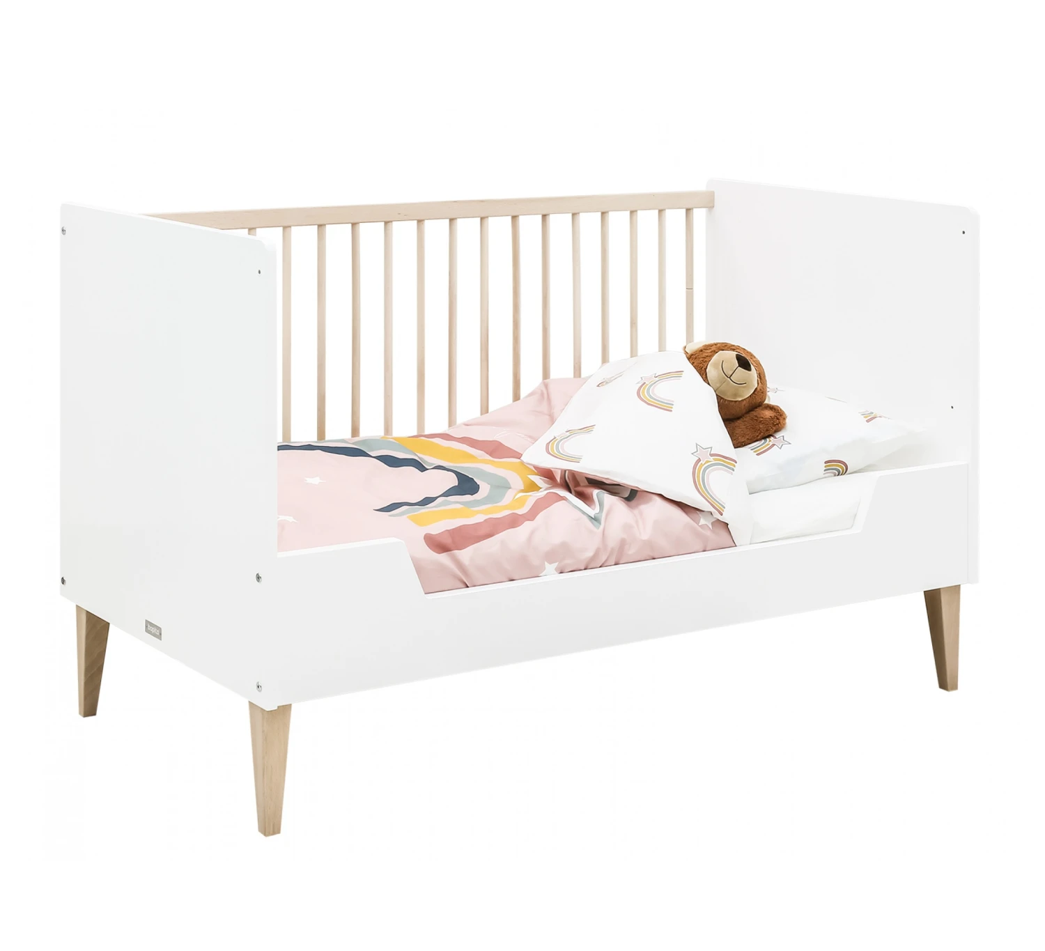 Let op: dit bed is niet om te bouwen naar een cotbed. Er is altijd één spijlenzijde aanwezig.