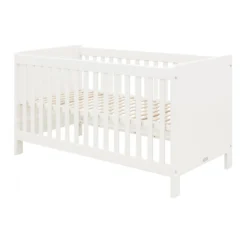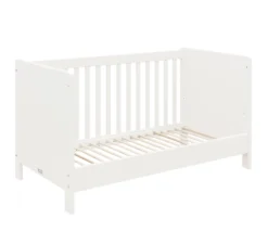 Dit babybed uit de serie Thijn van Bopita is om te bouwen van een ledikant met spijlen naar een peuter bedbank zodat de kleine zelf kan in- en uitstappen en hieraan kan wennen. Bedbodem, spijlenrek en lage zijde voor de bedbank worden standaard meegeleverd. De bodem van het spijlenbed is in hoogte verstelbaar. Omdat het bed in beide varianten 70×140 cm meet, heb je genoeg aan één matras. Doordat het bed om te bouwen is, heb je extra lang plezier van dit bed.