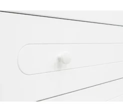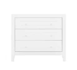 De commode uit de serie Evi van Bopita is uitgevoerd met 3-laden en is voorzien van kenmerkende sierlijke groeven en ronde handgrepen. Deze commde is te combineren met de barrier en wandrek uit de serie Evi.