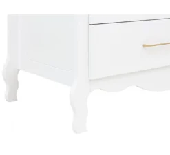 De commode Elena van Bopita is voorzien van drie ruime lades. Deze lades zijn voorzien van ranke, matte, goudkleurige handgrepen welke kenmerkend zijn voor de serie Elena. Evenals de karakteristieke sierlijke poten. Maak de commode compleet door de barrier Elena op de commode te plaatsen. Met behulp van dit opzetstuk kun je je kindje gemakkelijk en veilig verschonen. De barrier is apart verkrijgbaar.