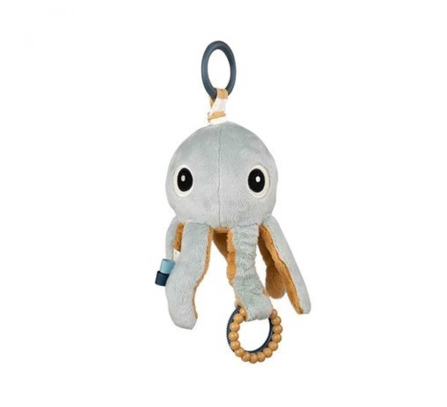 Aan de bovenkant is een handige ring bevestigd zodat de knuffel aan de maxi cosi, box of kinderwagen bevestigd kan worden, Zodra er aan de inktvis getrokken wordt gaat Jelly vibreren. Aan de onderkant vind je een spiegel waardoor je baby zichzelf kan zien. Jelly is een leuk en uitdagende speeltje om de zintuigen en het gehiir van uw kindje te stimuleren.