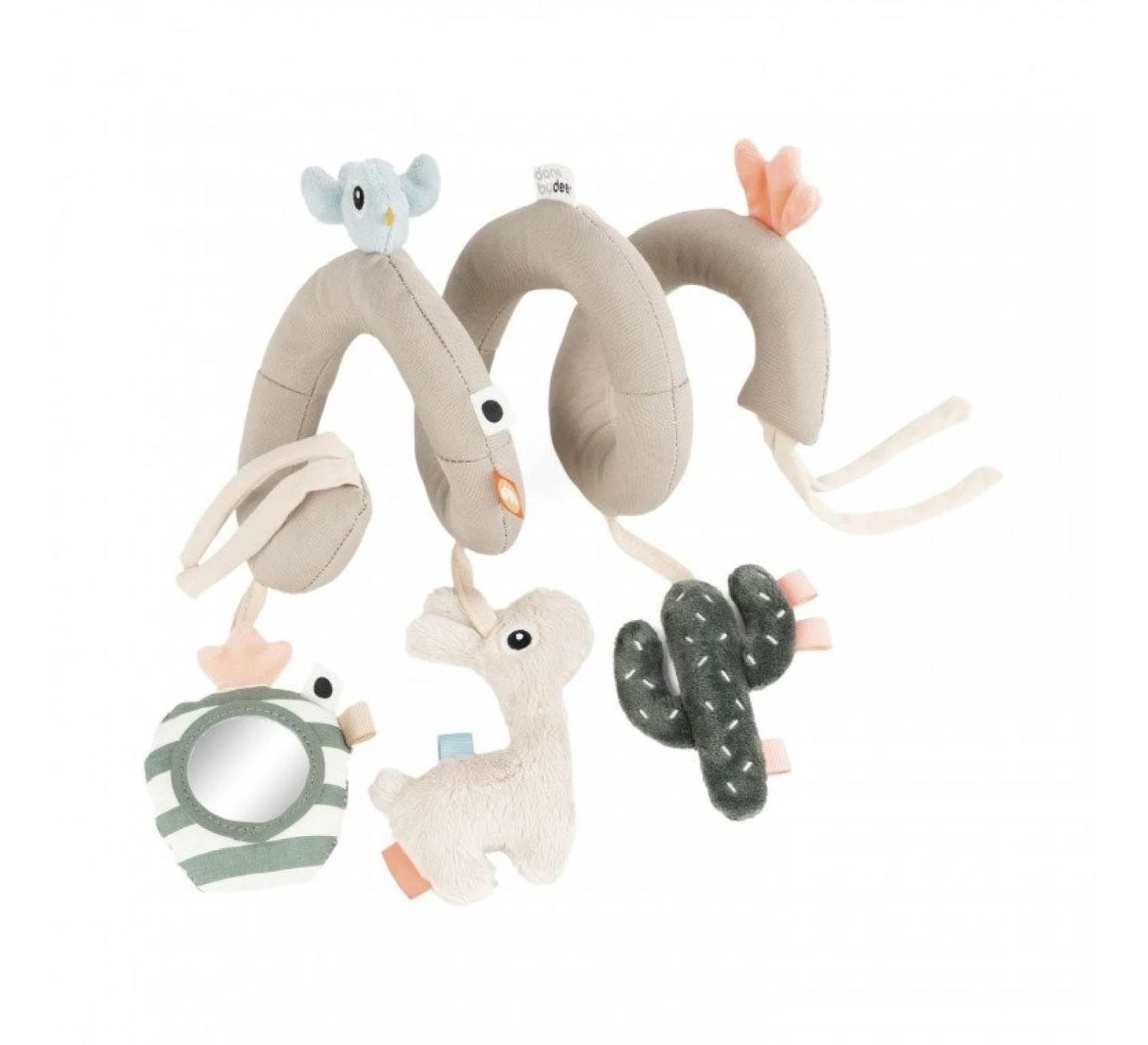 De boxspiraal is van het leuke merk Done by Deer. De spiraal is eenvoudig om de spijlen van de box of het ledikant vast te maken. Echter kun je de boxspiraal ook om de voorbeugel van kinderwagen spannen of de draagbeugel van het autostoeltje. Dankzij de hoogwaardige materialen mix zijn de speeltjes extra zacht en comfortabel om mee te spelen.
