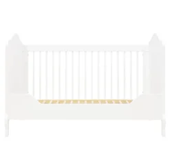 Dit doorgroeibed 70×140 Elena van Bopita is duurzaam omdat het met je kindje meegroeit. Je kunt het bedje in eerste instatie gewoon als ledikant gebruiken. Op het moment dat je kindje zich begint op te trekken kun je de verstelbare bedbodem omlaag zetten zodat je kindje veilig in het ledikant ligt. Wanneer je kindje groot genoeg is, dan is het mogelijk om een spijlenrek te vervangen door een lage zijde. Zo kan je kindje goed wennen aan het zelf in- en uitstappen van een bed. Dit bed is niet om te bouwen tot cotbed variant, er blijft altijd één spijlenzijde aanwezig. De serie Elena is te herkennen aan het golvende hoofd- en voeteneind en de karakteristieke sierlijke pootjes.