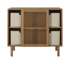 De Quax Hai No Ki-collectie is Japans geïnspireerd voor de liefhebbers van design, minimalistische eenvoud en de warmte van hout. De prachtige Quax Hai No Ki Commode is voorzien van 4 vakken waar je spulletjes kunt opbergen met daarvoor één deurtje die je eenvoudig naar links of rechts kunt schuiven. Zo houd je altijd 2 vakken open wat zorgt voor een fraai effect. Bovendien kun je kiezen om een barrier/opzetstuk toe te voegen (apart verkrijgbaar), zodat het verschonen nog makkelijker en veiliger wordt.