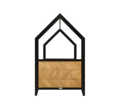 Dit 90 x 200 cm bed met een dakframe van de serie Job is uitgevoerd in een stoere combinatie van mat zwart en gefineerd hout. Onder dit bed is de bedlade Job te plaatsen. Ideaal om spullen in op te bergen, maar ook te gebruiken als een slaaplade. Deze lade is apart verkrijgbaar. Het bed wordt geleverd met rolbodem, exclusief matras. Aangezien het een natuurproduct betreft kan de houtstructuur per meubel van de serie Job verschillen.