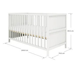 Het ledikant Luna van Flexa is gemaakt in een typisch Deens design en is voorzien van groeven als een mooi extra detail. Het bedje is verstelbaar in drie verschillende hoogtes en is aan te passen naar een peuterbedje als je kindje oud genoeg is. De drie middelste stangen zijn uitneembaar, waardoor je een kleine opening creëert waaruit je kindje uit bed kan stappen. Zo is de overgang van een ledikant naar een peuterbed stapsgewijs. Het bedje is gemaakt van massief beukenhout. Het matrasje is niet inbegrepen.