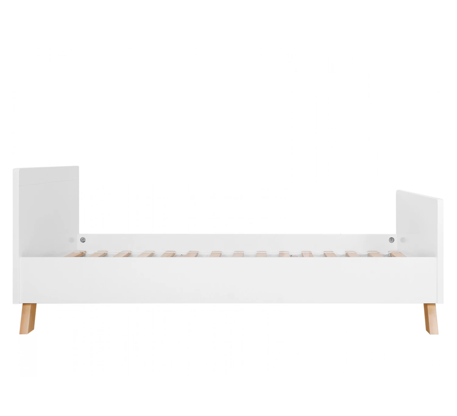 Het bed Lisa van Bopita kermerkt zich door de combinatie van dekkend wit en blank gelakt beukenhout. Het hoofd- en voeteneind zijn voorzien van subtiele groeven, waarmee het bed een stijlvolle uitstraling heeft. Onder het bed is het mogelijk een bedlade te plaatsen voor extra opbergruimte óf als extra slaapplek, deze is apart verkrijgbaar. Het bed wordt geleverd inclusief een houten lattenbodem. Combineer het bed Lisa met de andere meubelen van dezelfde serie voor een mooi en stijlvol geheel.