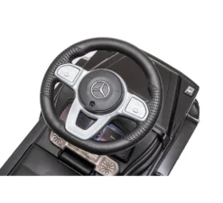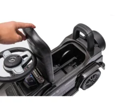 De loopauto Mercedes Benz G-Klasse is een echte musthave voor het wagenpark van je kleintje! Door de unieke uitstraling met de extra grote stoere velgen en het stuur, welke voorzien is van een claxon met diverse melodieen, komt je kleintje wel heel stoer voor de dag. Door het grote opbergvak in de zitting kan je kindje zijn belangrijke spulletjes altijd meenemen onderweg.