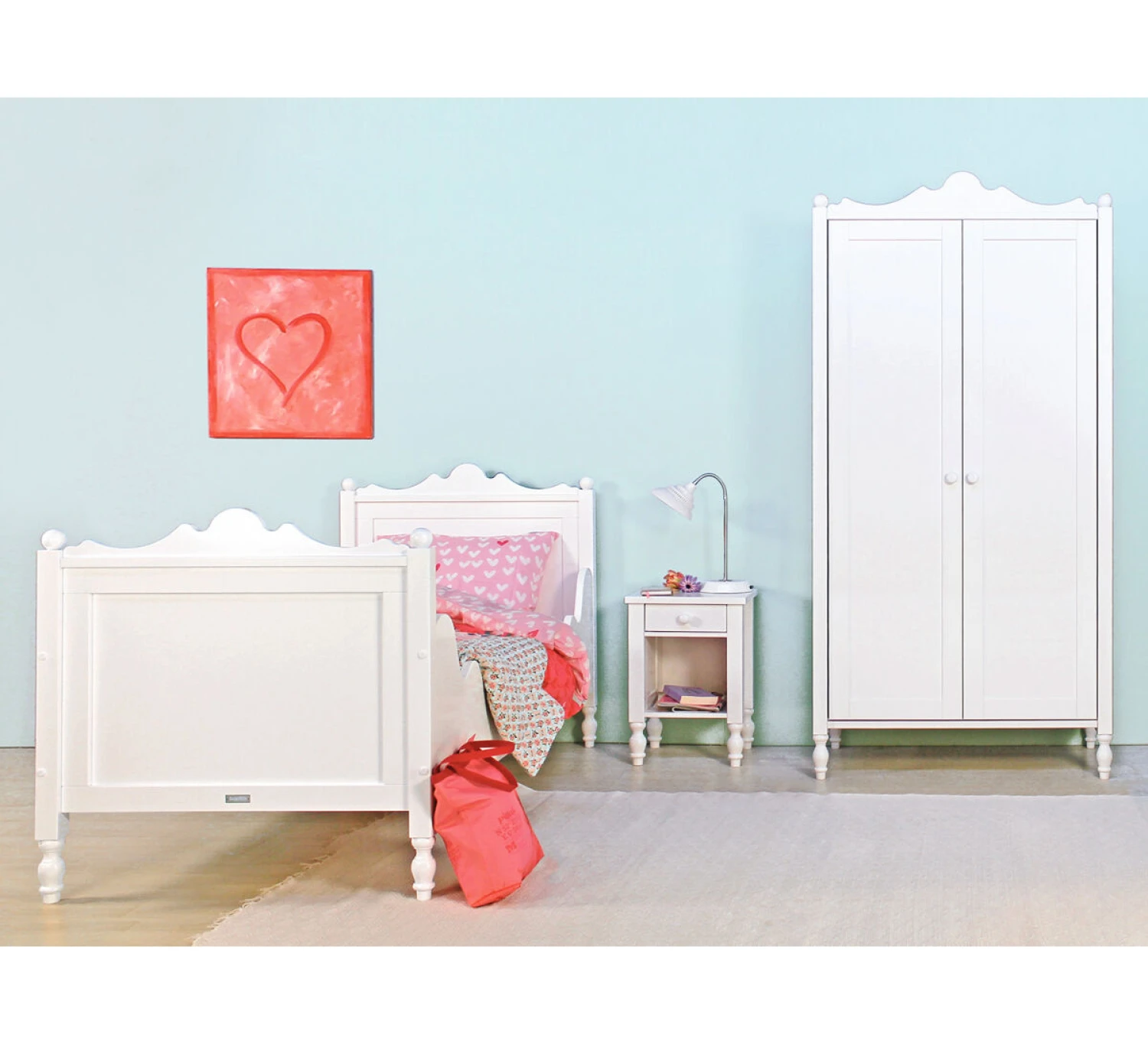 De Belle-serie heeft inmiddels een uitgebreide keuze aan leuke houten meubelen voor de junior of tienerkamer. Zowel het junior- als tienerbed is verkrijgbaar in vier kleuren namelijk wit, pink en silver. Verder is verkrijgbaar een tweedeurskast, half hoogslaper en bureau (alleen in wit), een nachtkastje in de vier genoemde kleuren. De meubelen zijn van MDF met een kindvriendelijke lak op waterbasis. De sierlijke pootjes en deurknoppen van de meubelen zijn van beukenhout, ook voorzien van een lak op waterbasis.