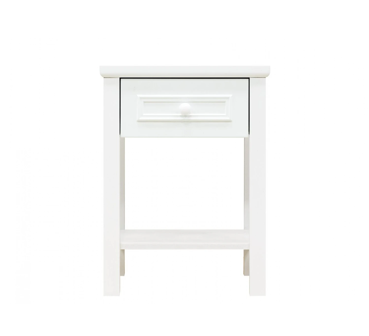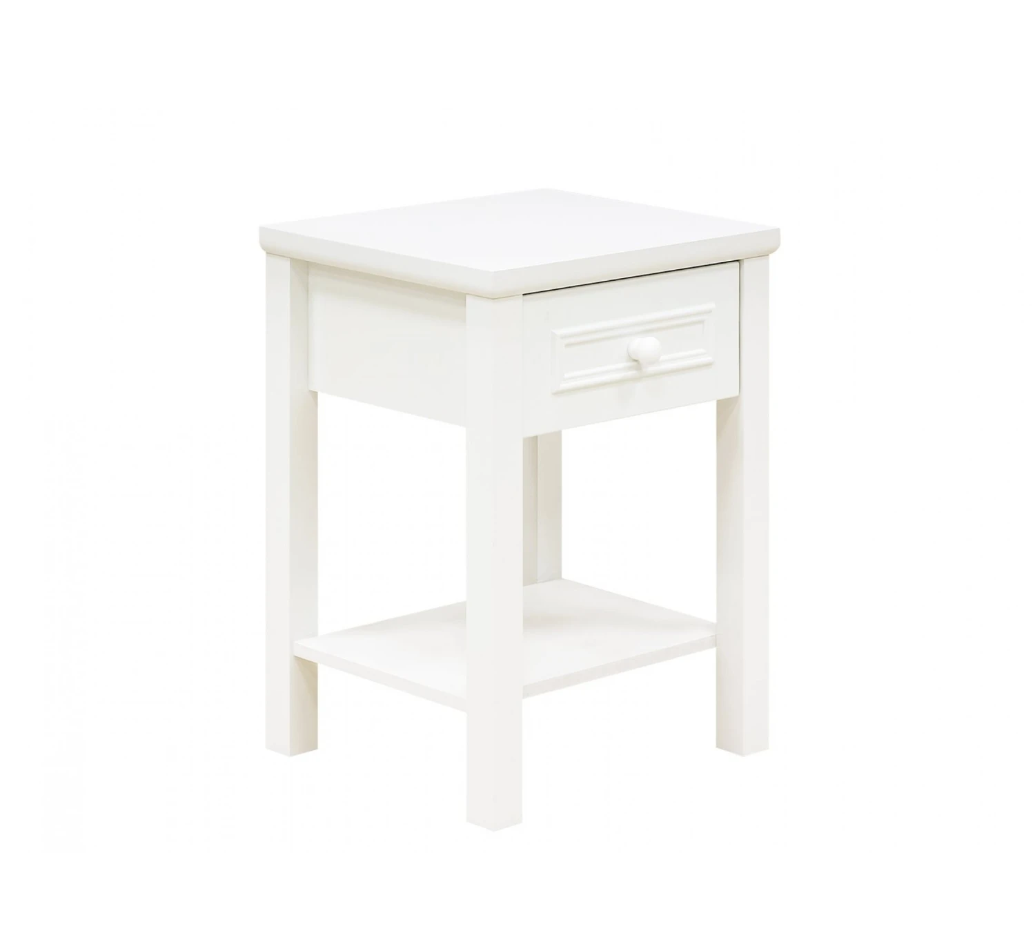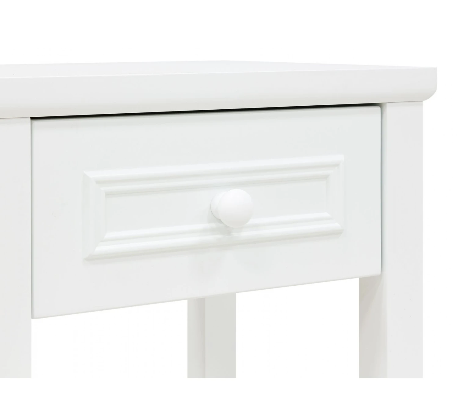 Het nachtkastje Charlotte heeft een klassieke en elegante uitstraling. De lade is voorzien van sierlijsten en een ronde knop. Bovendien biedt het nachtkasttje voldoende opbergmogelijkheden. Op de legplank kan je nog wat extra spulletjes leggen.