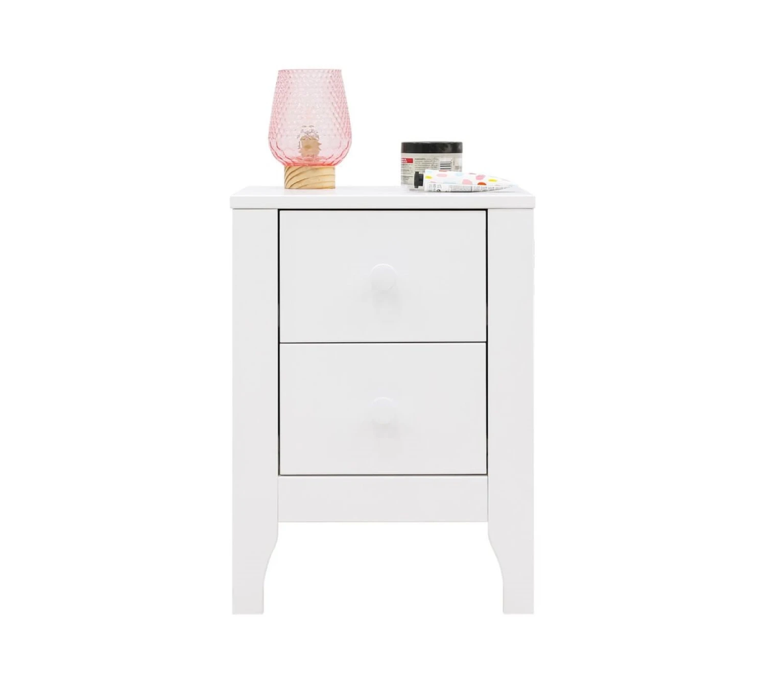 Nachtkastje Evi is voorzien van twee ruime lades. Ideaal voor naast het kinderbed! Afgewerkt met een lak op waterbasis, milieu- en kindvriendelijk.